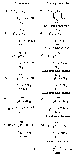 the major components: 1,3-diamino-4-(p-sulfophenylazo)benzene
