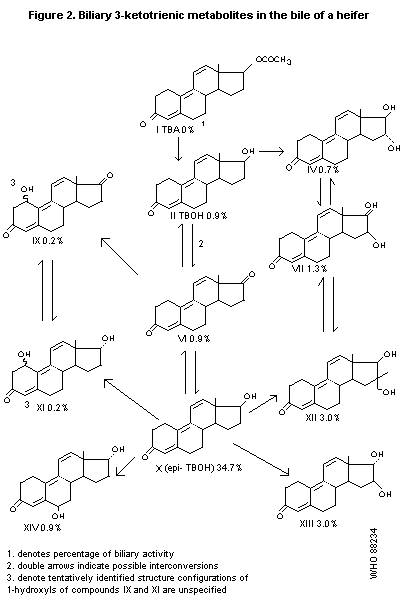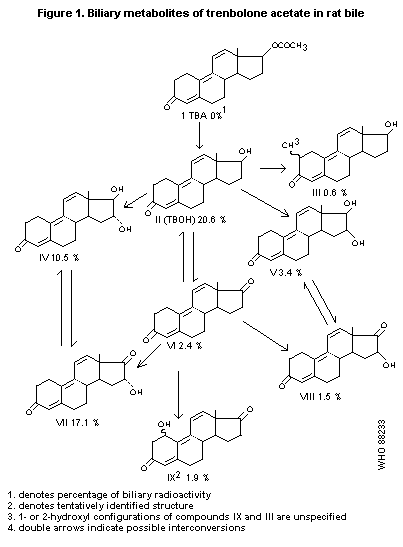 biliary radioactivity; 17-alpha-hydroxytrenbolone (alpha-TBOH) was not