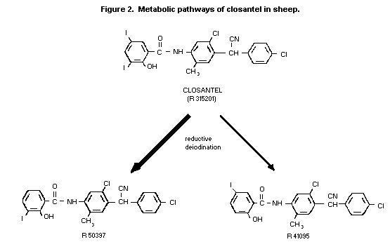 Closantel was eliminated from plasma with a half-life of 26.7 and 22.7