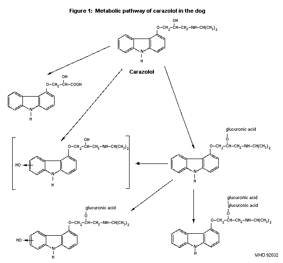 dose was excreted in urine. Apart from carazolol 6 metabolites were
