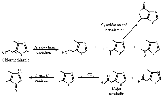 Offen, C.P., Frearson, M.J., Wilson, K. & Burnett, D. (1985) 4,5-Dimethylthiazole-N-oxide-S-oxide: A metabolite of chloromethiazole in man. Xenobiotica, 15, 503–511.