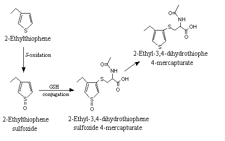 Dansette, P.M., Thang, D.C., El Amri, H. & Mansuy, D. (1992) Evidence for thiophene S-oxide as a primary reactive metabolite of thiophene in vivo: Formation of a dihydrothiophene sulphoxide mercapturic acid. Biochem. Biophys. Res. Communications, 186, 1624–1630.