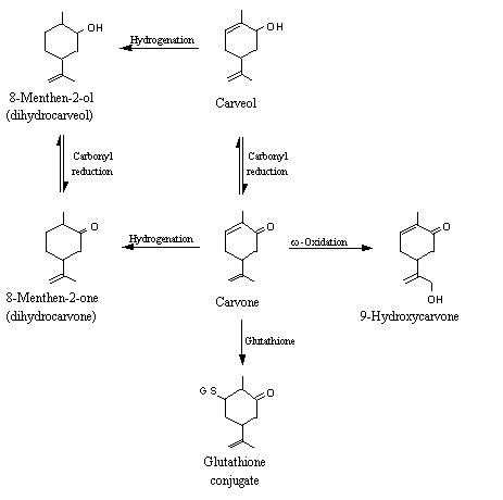 Ishida, T., Toyota, M. & Asakawa, Y. (1989) Terpenoid biotransformation in mammals. V. Metabolism of (+)-citronellal, (±)-7-hydroxycitronellal, citral, (–)-perillaldehyde, (–)-myrtenal, cuminalehyde, thujone, and (±)-carvone in rabbits. Xenobiotica, 19, 843–855.