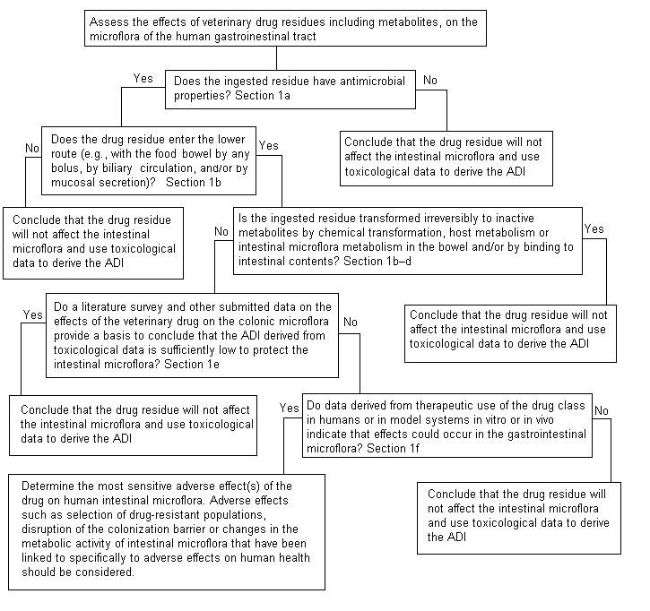 4. ‘Do data on the effects of the drug on the colonic microflora provide a basis to conclude that the ADI derived from toxicological data is sufficiently low to protect the intestinal microflora?’
