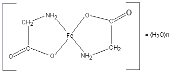 The call for data for the sixty-first meeting referred to this substance as ferrous bisglycinate. The Committee decided that this name did not accurately describe the substance being evaluated and therefore agreed that it should be referred to as "ferrous glycinate (processed with citric acid)". Ferrous glycinate (processed with citric acid) is an iron [II] chelate with the amino acid glycine, and also contains citric acid. It is manufactured by the reaction of reduced iron with glycine, in the presence of citric acid. At chemical equilibrium, > 97% of the ferrous ions are chelated. The resulting product is spray-dried without prior removal of the citric acid. The substance is highly hygroscopic and may contain water in variable amounts.