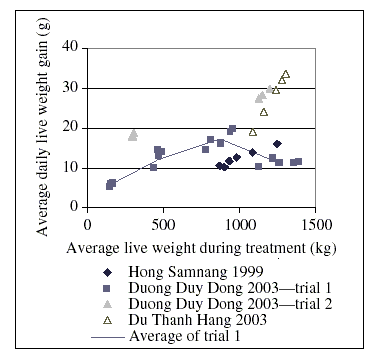 e The authors report the following relationship between dry matter intake (y) and live-weight gain (y): y= 0.415x - 9.75.