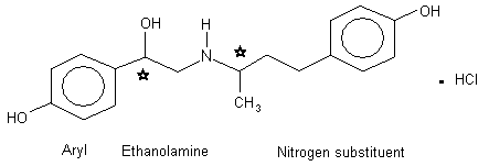 Phenethanolamine beta-adrenergic agonists share common structural characteristics that modulate their biological activity at beta-adrenoceptors, and their pharmacokinetic properties. For a beta-agonist to elicit biological activity, it must have a six-membered aromatic ring attached to the beta-carbon of the carbinol ("aryl") with substituents (hydroxyl groups or halogens), an hydroxyl group bonded to the beta-carbon in the levorotatory form, a positively-charged nitrogen in the ethylamine side-chain and a bulky substituent at the aliphatic nitrogen to confer specificity at the beta-adrenoceptor (Figure 1).