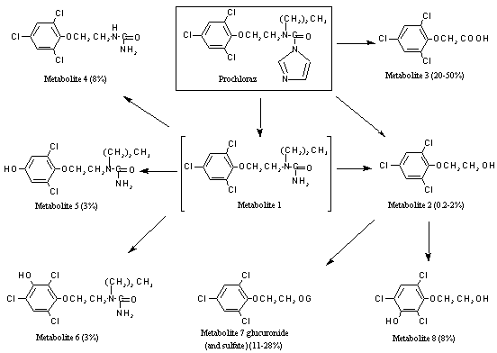 A generalized metabolic pathway for prochloraz in rats is shown in Figure 1.