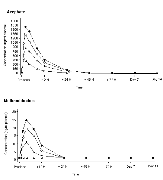 Tozer, T.N. (2000) Systemic exposure to acephate and methamidophos in humans on repeated daily oral doses to acephate technical: Predictive analysis using single dose data. Unpublished report from University of California, San Francisco, California, USA. Submitted to WHO by Tomen Agro, Inc., San Francisco, California, USA.