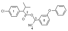 1, [14C-chlorophenyl]; 2, [14C-carbonyl]; 3, [14C-benzylic]; 4, [14C-cyano]; 5, [14C-phenoxybenzyl]