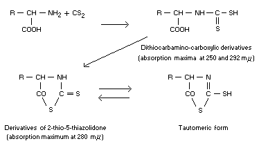 formation by fixation of carbon disulfide on peptides and proteins, of