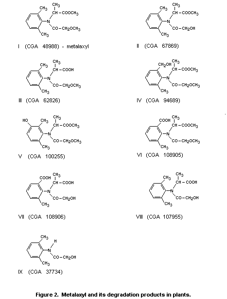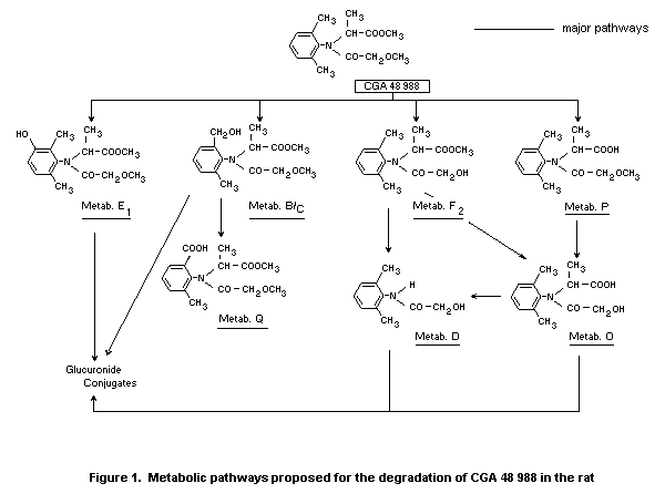 metabolite (N-(2,6-dimethylphenyl)-N-(methoxyacetyl-alanine) was only