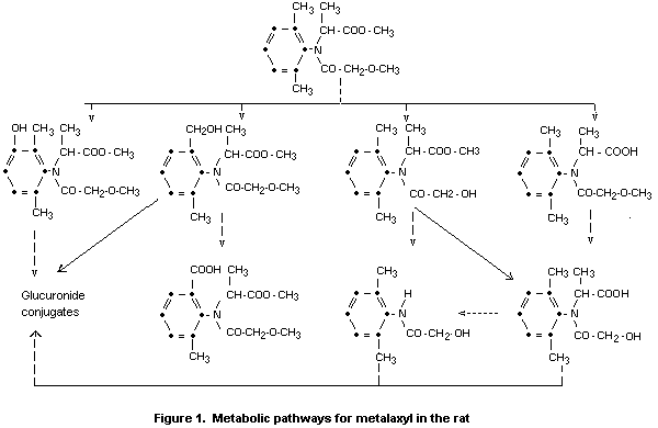 the degradation of metalaxyl in the rat proceeds primarily via (1)
