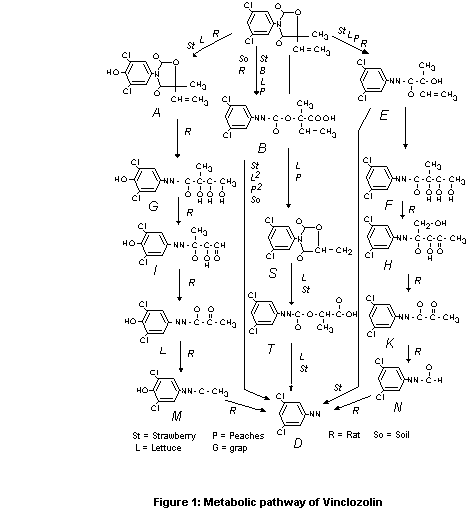 identities of metabolites. Vinclozolin was metabolized extensively, as