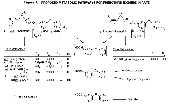 of phenothrin. Groups of 5 rats/sex were given either 14C-(1R,