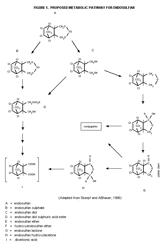 sulfuric acid ester, and endosulfan bicarbonic acid (postulated).