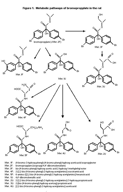 were evaluated in rats. [U-14C]phenyl bromopropylate was given