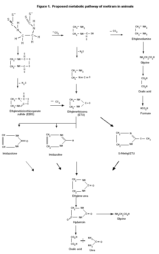 metiram accounted for 14.3% and 7.1% of a single 5 mg/kg bw dose in