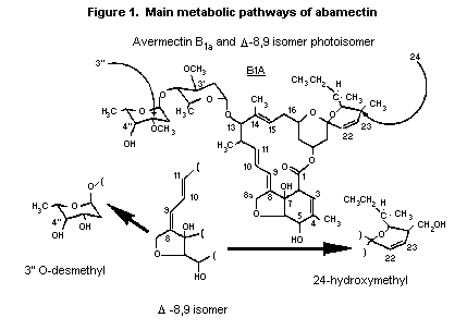 24-hydroxymethyl derivative of abamectin was found in rats, goats