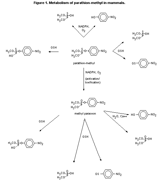 formation of the toxic substance, methyl paraoxon. Detoxification of